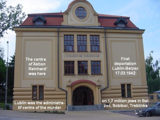 Polen en religie. Op zoek naar "Aktion Reinhard" in Majdanek Op zoek naar het zwarte gat dus, the black hole in the memory of the human species, zo vertaalde ik in m’n brokkelengels het doel van m'n zoektocht. De Majdanek-tentoonstelling is twee 'barakken' groot met enkel informatie op grote borden aan de muren bevestigd met weinig uitleg, de binnenruimte zelf is leeg, alles staat er nog zoals het er in 1950 werd neergezet en dat is op zich al een tentoonstelling natuurlijk. Maar het houdt ook in dat grote delen van het kamp nog intact zijn maar de informatieve waarde is een ramp. Ook over de "Aktion Reinhard" wordt met geen woord gerept en in de topografie van de uitroeiingskampen staat Treblinka niet eens aangegeven. "En hoe denk je dat het komt" vroeg de bibliotheekdirectrice, na m’n commentaar aanhoord te hebben. Ten eerste door de Koude Oorlog, de doden in het ene en het andere kamp hadden niet meer hetzelfde gewicht en Polen, spijtig voor de 3 miljoen joodse inwoners van Polen en 3 miljoen andere Poolse slachtoffers zaten in het verkeerde kamp. Ten tweede, ging ik verder, is de Poolse herinnering aan de vernietiging van de joden altijd bezwaard door het reeds aanwezige en ook na de oorlog voortlevende anti-semitisme dat geen draagvlak gecreëerd heeft voor de bescherming van joodse burgers door de Poolse bevolking gedurende de oorlog, noch voor de herinnering aan het Pools/Joodse lijden. De Poolse staat was in de oorlog deel geworden van het Generaalgouvernement, en in feite deel geworden van het Duitse rijk. Zij werden volledig ingezet voor opsporing, verzameling en deporatie van de joden, nadat reeds duizenden joden door de Einsatztroepen werden afgemaakt bij de inval in 1939. Meer nog, bij terugkomst van de weinige joden na de bevrijding in hun woongebied werden opnieuw progroms georganiseerd, maar dan nu door de Poolse bevolking. De joden die overbleven kozen er dan noodgedwongen voor om zich in Palestina te vestigen. En wil men de harde positie van Israël begrijpen is het goed ondermeer de geschiedenis van de Poolse joden te kennen, wat uiteraard geen enkele rechtvaardiging inhoudt van de onrechtmatige bezetting van Israël van Palestina en hun verzet tegen de oprichting van een Palestijnse staat, zo besloot ik m'n betoog. En dat er nu maar 15.000 joden in Polen leven tegenover 3 miljoen voor de oorlog is geen toeval. Maar de verhouding Poolse joden en niet-joodse Polen is taboe en het zal verder nog wel een tijdje blijven als je ziet wie in Polen nu de politieke macht heeft, besloot ik en hiermee was zij het eens. 1,7 miljoen Poolse joden zonder herinneringscentrum in Lublin Intussen blijft de gedachtenis, het onderzoek, de documentatie van een van de grootste uitroeiingactie van mensen in zulk een kort tijdsbestek (anderhalf jaar) binnen een erg beperkte lokaliteit (Treblinka, Sobibor, Belzec zijn geconcentreerd aan de Pools-Russische/Oekrainse grens) zonder centraal onderzoeks- en gedachteniscentrum. 1,7 miljoen mensen werden uit hun huizen gehaald, op transport gesteld, in transitkampen ondergebracht of rechtstreeks naar de vernietigingskampen gebracht waar geen selectie gebeurde maar iedereen onmiddellijk werd gedood door de rook, gas uit wagens en daarna cyclon B, vervoerd naar verbrandingsovens, of collectief verbrand en daarna uitgestrooid op de akkers of in de wind. 1,7 miljoen individueel levende mensen, met elk hun achtergrond en geschiedenis in een van de Poolse districten. Kernpersonen in het sociale, culturele, wetenschappelijke, politieke en economische leven die sinds eeuwen in Polen verbleven werden door een politieke beslissing van een democratisch verkozen regime in het Duitsland van Goethe, Bach en Schiller met inzet van al het wetenschappelijke en intellectuele potentieel om het leven gebracht. Het was geen wilde daad van monsters, maar van erkende en hooggeëerde Duitse burgers, die er hun werk van maakten op een hygiënische en goed uitgekiende wijze een einde te maken aan het leven van 1,7 miljoen mensen, en hun legitimatie vonden in het extreem doortrekken van de verworvenheden van de verlichting, de mens kan (en moet) zijn (sociaal biologische) lot zelf in handen nemen en 'wetenschappelijk' sturen, ondermeer door de eliminatie en liquidatie van onvolkomen elementen in de soort zoals gehandicapten en ouderen, of van in hun ogen gedegenereerde onderdelen zoals joden en in 2de orde de Slavische volkeren die mogen blijven leven maar als dwangarbeider. En na de arbeid keerden telkens tienduizenden SS-functionarrissen en het kamppersoneel in hun huisgezinnen terug. Voor een beschrijving van dit 'genormaliseerde' SS-leven zie ondermeer het dagboek van Paul Kremer. De ene dode is de andere niet Voor de oorlog bestond het district Lublin voor 40% uit Joden die er toen al voor een gedeelte naar werden verdreven. Daarvan is op het eerste gezicht niet veel meer van te merken. De ene dode is evenwel de andere niet, Auschwitz heeft haar plaats in de geschiedenis van de mensheid veel sterker vastgelegd en gematerialiseerd dan de 1,7 miljoen doden in wat de Duitse nationaal-socialisten cryptisch de “Aktion Reinhard” noemden en vooral in de kampen Sobibor, Treblinka en Belzec werd uitgevoerd. Er waren maar enkele overlevenden (3 in Belzec bv op 430.000 vermoorde personen) en de vernietiging van de kampen zelfs na het volledig uitvoeren van de vernietigingsopdracht eind 1942 (Belzec) en 1943 spelen hier natuurlijk in mee. Veel meer dan Auschwitz waar vooral de West-europese joden werden omgebracht en ook 437.403 Hongaarse joden in de lente 1944, staan de drie uitroeiingskampen, gelegen aan de Bugrivier, die Polen en Rusland/Oekraine scheidt, in feite mee symbool voor de 3 miljoen Poolse en 1 miljoen Russische joden waarvan de herinnering deels ook in de Koude Oorlog een tweede dood stierf. Maar ook naar Sobibor werden 34.000 Nederlandse joden vanuit Vucht en Westerbork vervoerd om er te worden vergast. De herinnering in Nederland heeft daar een vaste plaats ve