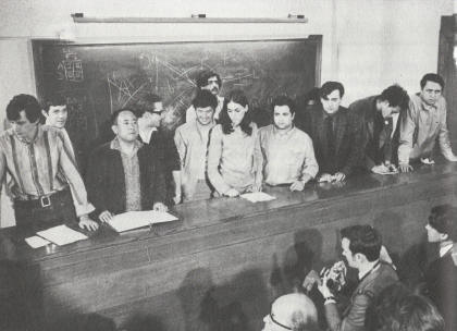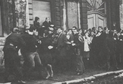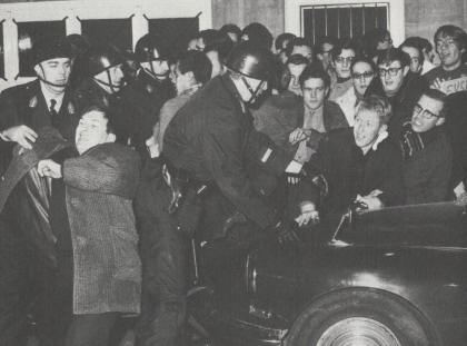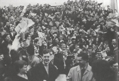 Even belangrijk echter zijn de brede maatschappelijke thema's waarmee SVB aan de politieke bewustwording van de student wil sleutelen. 31 oktober, Tsjechoslowakije. De politie onderdrukt gewelddadig een vreedzame demonstratie van studenten tegen hun gebrekkige huisvesting. Dit optreden stuit op krachtig verzet in universitaire kringen. Enkele maanden later zou partijleider Novotny onder druk van het aanzwellend protest van studenten, schrijvers en intellectuelen, de baan moeten ruimen voor de Slowaak Alexander Dubcek (5 januari 1968). Algemeen verhopen de intelligentia een ontdooiing van het regime. Dubcek zou inderdaad een meer liberale wind door Tsjechoslowakije doen waaien, beter gekend als de Praagse lente. november 1 november, Duitsland. De eerste kritische universiteit gaat te West-Berlijn van start, ondanks tegenkantingen van de academische overheid. Als alternatief voor de traditionele colleges organiseren de studenten zogenaamde wilde cursussen in ideologiekritiek. In meer concrete analyses worden de alledaagse problemen van Berlijnse industriearbeiders uitgediept. Later ontstaan ook in Hamburg, Frankfurt am Main, Heidelberg, Kiel, Mainz en Munster kritische universiteiten. 17 november, Italië. Milanese studenten bezetten de universiteitsgebouwen. Ze dringen aan op structuurhervormingen van de universiteit. De eis voor medebeheer in paritair samengestelde commissies staat centraal. 24 november, Leuven. KVHV, VNSU, SK (Seniorenkonvent), FK (Faculteitenkonvent) en SVB slaan broederlijk de handen in elkaar in de strijd voor Leuven Vlaams: samen richten ze het Aktiekomitee Universitaire Expansie op. De bedoeling is om de acties van de Leuvense studenten voor de overheveling te coördineren en er een grotere weerklank aan te geven. 27 november, Polen. Naar aanleiding van een toneelvoorstelling van 'De Voorvaders' van Adam Mickiewicz waarin het verzet van revolutionaire jongeren tegen de tsaristische dictatuur wordt geëvoceerd, breken aan de universiteit van Warshau rellen uit. Na de weigering om de gearresteerde studenten amnestie te verlenen, worden de universiteiten van Warshau, Krakau en Wroclaw bezet. De repressie van de regering Gomulka is brutaal en tot het einde van het jaar blijft de sfeer aan de Poolse universiteiten gespannen. 30 november, Leuven. Met een algemene volksvergadering en een betoging protesteren de studenten tegen het neerschieten van een landbouwer te Oudenaarde door de rijkswacht. De organisatoren van de manifestatie, met name het KVHV, VNSU, SK en SVB, stellen hiervoor het kapitalistisch systeem dat uitloopt op 'fascisatie' en moord, verantwoordelijk. december december, Spanje. In het Spanje van Franco ijveren de studenten voor meer democratie. Stakingen en demonstraties zijn dagelijkse kost gedurende de maand december aan alle universiteiten in het land. 6 december, Brussel. Provo's spelen Sinterklaas in de nieuwstraat. Ze delen appelen uit die in een pamflet gewikkeld zijn met de volgende tekst: 'De appel die wij U geven is geen cadeau, noch een gift of een publiciteitsstunt. Hij is uw wettelijke eigendom. Provo Brussel verdeelt deze appels om het privé-eigendom te provoceren... de appel is het eerste vrij produkt... het eerste niet-gecommercialiseerd produkt in een hipper-gecommercialiseerde maatschappij... een stap in de richting van de Witte Maatschappij'. 12 december, Brussel. Vier Vlaamse verenigingen, de Oud-Studentenbond, het Brusselse Vrijzinnig Hoger Onderwijs en de Vereniging van Vlaamse Professoren-afdeling Brussel, publiceren een motie waarin ze pleiten voor een tweeledige vrije universiteit te Brussel. Ze eisen een grotere Vlaamse vertegenwoordiging in allerlei universitaire raden en ze willen dat de uitbreiding op het Oefenplein ten goede komt aan de Nederlandstalige afdeling. 13 december, Leuven. Het Aktiekomitee Universitaire Expansie organiseert een betoging voor de overheveling van de UCL naar Wallonië. Meer dan 1000 Vlaamse studenten nemen deel. 20 december, Leuven. Tussen de Nederlandstalige en Franstalige afdeling komt het tot een kortsluiting op de raad van beheer, waardoor elke besluitvorming geblokkeerd wordt. Aanleiding is een Waals projekt voor uitbreiding van het meisjesverblijf 'Sedes'. Van Franstalige kant was enkele dagen voordien beslist daartoe eigendommen aan te kopen, zonder dat men daaromtrent de Vlaamse partners gepolst had. Dit was in strijd met de afspraken binnen de raad van beheer en bovendien waren daar geldsommen mee gemoeid die uit de unitaire pot moesten komen. Daartegen protesteren de Vlamingen op de raad van beheer. Onder Vlaamse druk doktert de Franstalige afdeling uiteindelijk een investeringsplan uit dat de goedkeuring van de Vlamingen moet wegdragen. januari 1 januari, Cuba. Fidel Castro voorspelt tijdens zijn nieuwjaarstoespraak in Havanna: '1968 zal een heroïsch jaar worden'. januari, Italië. Begin 1968 bezetten studenten de helft van de 36 Italiaanse universiteiten. De acties zijn onafhankelijk van elkaar georganiseerd. De redenen van ontevredenheid onder de Italiaanse studenten verschillen van stad tot stad: de massale toevloed van studenten waardoor de universiteiten uit hun voegen dreigen te barsten, verouderde programma's, het politie-optreden in andere universiteitssteden, selectiecriteria enz. De actievoerders scanderen leuzen als 'de macht aan de vergadering', 'neen tegen het academisch autoritarisme', 'studentenmacht'. Ook de Amerikanen moeten het ontgelden omwille van hun inmenging in Vietnam. 2 januari, Leuven. Professor Paul De Visscher, ondervoorzitter van de academische raad van Leuven-Frans, eist in een ophefmakend artikel in La Libre Belgique het recht voor de Franstalige afdeling om in Leuven te blijven en het recht op vrije expansie van de universiteit. Hierbij stelt hij het project voor een medische campus te Sint-Lambrechts-Woluwe prioritair. 8 januari, Frankrijk. Minister Missoffe voor Jeugd en Sport opent het zwembad van de universitaire campus van Nanterre bij Parijs. Daniël 