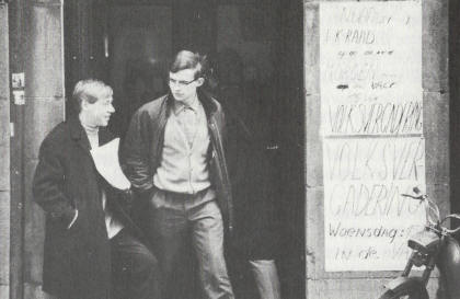 Op de duur controleren pedellen de studentenkaarten voor iedere les van Versichelen. Ook de tussenkomst van de politie verwekt bij veel studenten wrevel. Incidenten met de ordehandhavers zijn legio. 25 november, Leuven. De academische raad weigert een studentendelegatie samengesteld uit leden van het overkoepelend Aktiekomitee Leuven, te ontvangen. Reden is de aanwezigheid van de SVB-er Walter De Bock, met wiens achterban de academische overheid niet hoog oploopt. Als reactie tegen de exclusieve houding van de overheid besluit het Faculteitenkonvent om op 4 december een staking uit te roepen, die echter ook meteen het einde van de actie informatierecht te Leuven zou betekenen. DE STIEFKINDEREN VAN DE LEUVENSE ALMA MATER - Inhoud De welbespraakte Paul Goossens (°1942) werd de woordvoerder van de Leuvense studenten. Tijdens het academiejaar 1966-1967 was hij praeses van het KVHV, maar legde op het einde van zijn praesesschap, enkele maanden na de afscheuring van SVB, in oktober 1967 zijn lint neer. Het volgend academiejaar ontpopte hij zich tot voorman van de SVB, terwijl hij officieel ook als voorzitter van VVS fungeerde. De vakbeweging zat hem blijkbaar in het bloed want tijdens zijn daaropvolgende legerdienst in 1969-1970, richtte hij SOLVAK op, een soldatenvakbond. Nadien belandde Goossens in de journalistiek, in 1971 als medewerker van het efemere progressieve weekblad Vrijdag en in 1973 als economisch redacteur van De Standaard. Vanaf 1978 houdt hij als hoofdredacteur de nieuwe socialistische krant De Morgen drijvende. Met betrekking tot de revolte verscheen van zijn hand volgende analyse: De Leuvense revolte. Katalisator voor de democratische praxis in Vlaanderen en Wallonië, in het Vlaams Marxistisch Tijdschrift, 3, jg. 1, september 1966. Ludo Martens (°1946) militeerde oorspronkelijk voor een zuivere taal in ABN-kringen van het KVHV. Toen hij in het academiejaar 1966-1967 de redactie waarnam van Ons Leven, verscheen dit erg traditioneel studentikoze blad plotseling in een ander kleedje, uitdagend, 'provoïd' naar vorm en inhoud, wild om zich heen schoppend, met kerk en kapitaal aan de schandpaal. Door het beruchte sex-nummer van februari 1967 haalde hij zich voorgoed de woede van de academische overheid op de hals. In maart 1967 pionierde Martens te Leuven met de Studentenvakbeweging. Begin juni 1967 stapte hij met andere SVB-militanten uit het KVHV. In de zomer van 1967 bekwaamde de SVB zich in de marxistisch-leninistische theorie. Deze 'met romantiek behaarde, ietwat afzijdige schuwe sikkel' die zich (nog steeds volgens het Leuven provo-blaadje NUL) 'met opgeheven schouderbladen langs onze drankhuizen en openbare pleinen voortbeweegt' zou zich weldra opwerpen als de strenge, koele theoreticus van de SVB. In het academiejaar 1967-1968 werd Martens niet toegelaten aan de Leuvense universiteit. De academische overheid liet zich ook het volgend academiejaar niet vermurwen. Hij verplaatste dan zijn actieterrein naar Gent, waar hij het vuur van de revolte meebracht. In 1971 was hij medeoprichter van AMADA, dat in 1978 omgevormd werd tot Partij van de Arbeid. En daar is hij tot vandaag de leidende ideoloog. Martens is co-auteur van de verjaardagspublikatie Dat was 1968 uit 1978. De 24-jarige geneesheer in spe, Kris Merckx, (°1944) cumuleerde tijdens het academiejaar 1968-1969 een dubbele taak in de Leuvense studentenwereld: behalve praeses van de faculteitskring Medika, was hij ook voorzitter van het overkoepelende Faculteitenkonvent. Aanvankelijk als reformist verkozen tegen een SVB-kandidaat in, zou hij als praeses in een conflict met rector De Somer tot SVB-voorman radicaliseren. Van de weeromstuit raakte hij zodanig vervreemd van zijn gematigde achterban in het FK, dat hij in maart 1969 ontslagen werd. Na een jaar aspirant geweest zijn van het Nationaal Fonds voor Wetenschappelijk Onderzoek, installeerde hij zich als huisarts in een groepspraktijk te Hoboken samen met Michel Leyers. Door hun lage tarieven kregen ze het meermaals aan de stok met de Orde der Geneesheren, die hen in 1973 en 1975 zelfs voor de rechtbank daagde. Hun opeenvolgende schorsingen lapten deze 'rode artsen' keer op keer aan hun laars. Eind 1975 beval de Antwerpse rechtbank zelfs een psychiatrische expertise van dokter Merckx naar aanleiding van zijn deelname aan acties op de scheepswerven van Cockerill-Yards. Ondertussen was Kris Merckx AMADA-militant geworden en zetelde hij in de gemeenteraad van Hoboken. Walter De Bock (°1946) studeerde in het magische en woelige contestatiejaar 1968 aan de faculteit van letteren en wijsbegeerte te Leuven. Met zijn 22 jaar was hij vurig SVB-militant; net als Paul Goossens had hij voordien in KVHV-kringen vertoefd. Zo was hij gedurende 1965-1966 hoofdredacteur van het KVHV-orgaan Ons Leven. Hij gaf vroegtijdig zijn studies op om beroepsjournalist te worden, respectievelijk bij De Nieuwe Linie, Vrijdag, Knack-magazine, BRT-Panorama, De Krant, en opnieuw Knack, waar hij hoofd werd van de documentatiedienst. Vanaf januari 1979 ruilde hij deze job voor hoofd en coördinator van de politieke redactie van het dagblad De Morgen. 30 november, Luik. Bij een betoging tegen het vertonen van de pro-Amerikaanse Vietnamfilm The Green Barrets geraken studenten en ordehandhavers slaags. Dit scenario herhaalt zich nog twee maal diezelfde week. december 3 december, Brussel. In het auditorium Paul-Emile Janson houdt Louis Armand, president van de Parij se Ecole polytechnique een lezing over de participatiegedachte. Onder zijn gehoor bevinden zich koning Boudewijn en talloze prominenten. De plechtige vergadering zet heel wat kwaad bloed bij de studenten omdat die van tevoren nergens was aangekondigd. De conclusie ligt voor de hand: als de dood voor een confrontatie verkozen de organisatoren een conferentie over medezeggenschap zonder dat studenten er hun zegje doen. De studenten, die zich aardig gepasseerd voelen, zetten de hal van het auditorium op stelten en zorgen voor de nodige heibel o