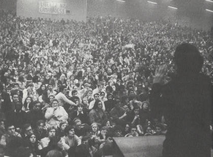 Bij zijn terugkeer werd hij benoemd tot professor en studentenpastor aan de nationale universiteit van Colombia in Bogota. Onder impuls van de studenten evolueerde zijn overwegend theoretisch werk tot een praxis van de revolutionaire strijd. Vanwege zijn politieke activiteit liep hij een kerkelijke veroordeling op, waarna hij zijn priesterambt neerlegde. Aanvankelijk poogde hij nog een eenheidsfront van alle tegenstanders van de heersende orde te vormen, maar toen hij inzag dat een wettelijke volksbeweging niet haalbaar was, sloot hij zich aan bij de guerrilla-beweging. Op 17 februari 1966 sneuvelde hij tijdens een gevecht met het Colombiaanse leger. Voor de studenten was hij niet dood. Ook te Leuven was de herinnering aan deze opmerkelijke alumnus en zijn bewogen levensloop blijven nazinderen. Twee jaar na zijn dood, in 1968, werd een nieuwe studentenwoonwijk aan de Brusselsestraat in Leuven naar hem genoemd. 28 maart, Gent. Gentse studenten staken en meer dan 1000 onder hen stappen op in een manifestatie tegen het beleid van de rector. Die ultieme actie luidt meteen het einde in van de Gentse maartbeweging want de paasvakantie staat voor de deur en de naderende examens zouden bij de meesten de strijdbare ... hiermee voor jarenlang in het hoger onderwijs zuilen en gemeenschappen gelijmd. juni 12-22 juni, Nederland. De processen tegen de bezetters van het Maagdenhuis te Amsterdam vinden plaats. De nacht van 12 op 13 juni wordt opnieuw een nacht op de barricaden. Een demonstratie van ongeveer 6000 man eindigt in een veldslag met de politie. De processen zelf lijken een schoolvoorbeeld van politieke rechtspraak, die zelfs bij professoren in de rechtsgeleerdheid protest uitlokt. juli 21 juli, Verenigde Staten. De Amerikaanse astronaut Neil Armstrong zet als eerste mens voet op de maan, 'een kleine stap voor hem, een grote sprong voor de mensheid'. augustus 15-17 augustus, Verenigde Staten. De Amerikaanse jeugd — de media gewagen van 300.000 tot 500.000 aanwezigen — beleeft met hart en ziel de mythe van het Woodstock-muziekfestival. oktober 6 oktober, Leuven. Voor de eerste keer mag bij de opening van het nieuwe academiejaar ook een student het woord voeren. Mon Vanderostyne, voorzitter van de Algemene Studentenraad, spreekt over 'participatie of contestatie'. PARTICIPATIE OF CONTESTATIE - Inhoud Bij de aanvang van het academiejaar 1969-1970 werd de studentenbeweging voor de keuze gesteld tussen participatie, die aan de meeste universiteiten welhaast geïnstitutionaliseerd was, of contestatie, een modeverschijnsel, zo leek het, dat, wou het een volgend seizoen nog meegaan, dringend aan een herdefiniëring van zijn doelstellingen toe was. De participatie veronderstelde een beperking van het vernieuwingsstreven tot de universiteit, in tegenstelling tot de contestatie die de maatschappij zelf ter discussie stelde, en daarom de problemen in de universitaire binnenkeuken als bijkomstig wegwuifde. Revolutionaire studentenbewegingen zochten toenadering tot de arbeiders en raakten hierdoor in het studentenmilieu gemarginaliseerd.