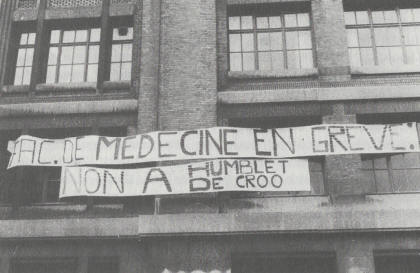 voor alle buitenlandse studenten een voorlopige verblijfsvergunning. Ze pleiten tevens voor politieke rechten en een speciaal statuut voor vreemdelingen. 27 oktober, Gent. Tweehonderd studenten uiten hun ongenoegen over een nieuw wetsontwerp van minister van onderwijs Pierre Vermeylen inzake het maturiteitsexamen. De minister wil dit examen afschaffen en vervangen door een proef die de eerstejaarsstudenten na drie maand universiteit zouden moeten afleggen. 29 oktober, Leuven. In Leuven betogen een 200-tal studenten tegen de maatregelen die minister Vranckx heeft aangekondigd met betrekking tot de vreemde studenten. november 30 november, Leuven - Luik. De studentenwereld schiet wakker nu de uitvoering van de maatregelen van minister Vranckx ten aanzien van de buitenlandse studenten op til is. In de loop van de maand december blijkt de sociale bewogenheid onder de studenten nog levendig genoeg om een massale mobilisering te doen gelukken. Te Leuven en te Luik uiten de studenten hun ongenoegen op straat. Tot 18 december vindt vanaf nu bijna