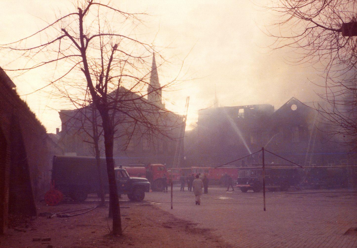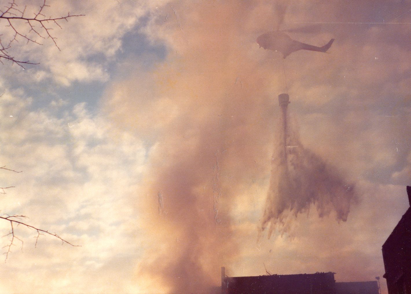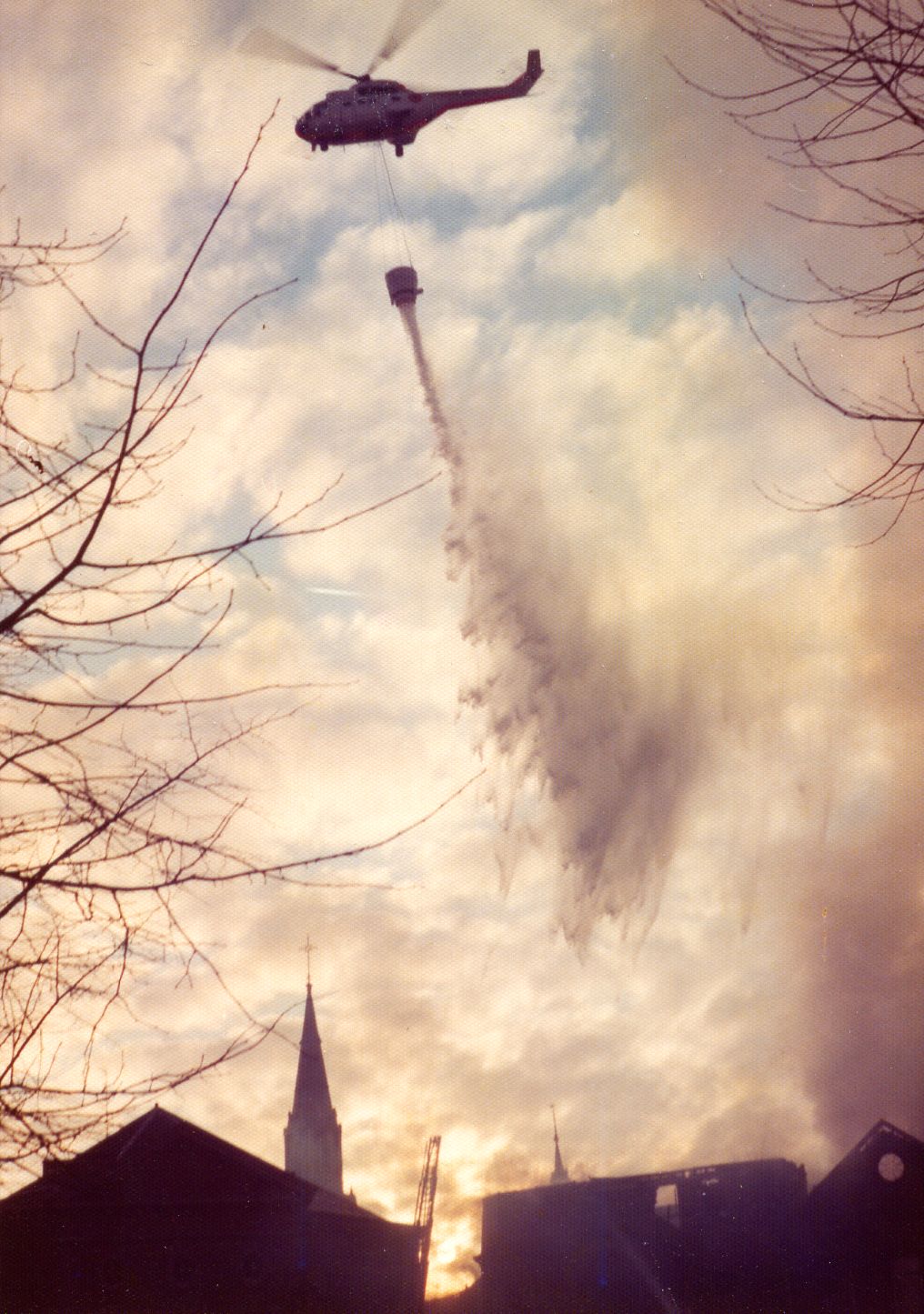 7 foto's abdijbrand op 9 september 1975 nadat de toren al ingestort was en de helikopter nabluste Home